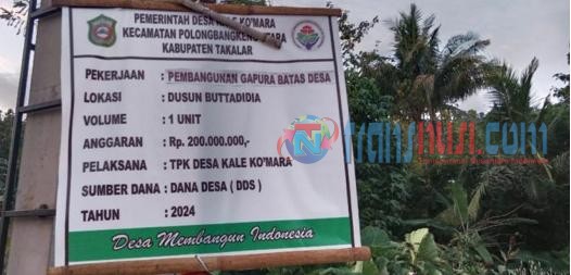 Takalar, Sulawesi Selatan — Beberapa Aktivis di Kabupaten Takalar, menyoroti pembangunan gapura desa kalekomara kecamatan polong bangkeng timur Kabupaten Takalar, yang menelan anggaran fantastis sebesar Rp 200.000,00. Dinilai anggaran tersebut tidak sebanding kegiatan/pekerjaan dengan Anggaran nya dimana asas manfaatnya tidak dirasakan oleh masyarakat Desa Kalekomara.