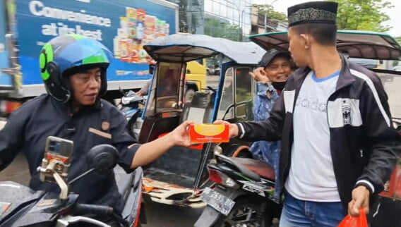 Selain buka puasa bersama, Sekret PW MOI bersama media online mereka juga melakukan aksi bagi-bagi nasi dos ke warga sekitar