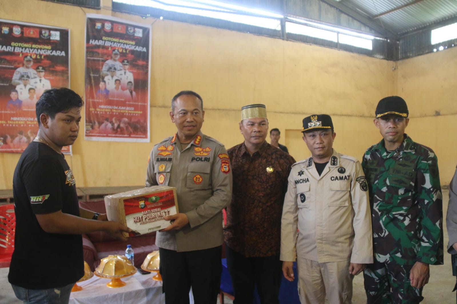 Bakti sosial dilaksanakan Kombes Pol Mokhamad Ngajib dalam rangka menyambut HUT Bhayangkara Polri ke 77 Tahun 2023, dengan menggelar kegiatan kerja bakti bersih-bersih lingkungan di Kelurahan Tallo