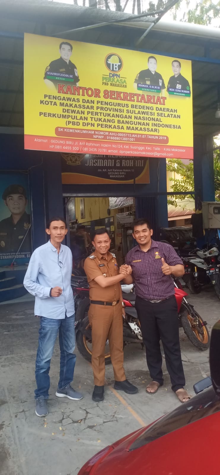 Transnusi.com Makassar — Camat Tallo, Alamsyah Sahabuddin S. STP, MSi mengunjungi salah satu tokoh masyarakat kecamatan Tallo H. Syahrifuddin yang juga sebagai ketua Tukang Kota Makassar, DPN Perkasa di Sekretariatnya Gedung Biru No.124 Jalan AR Hakim (01/08/2022).