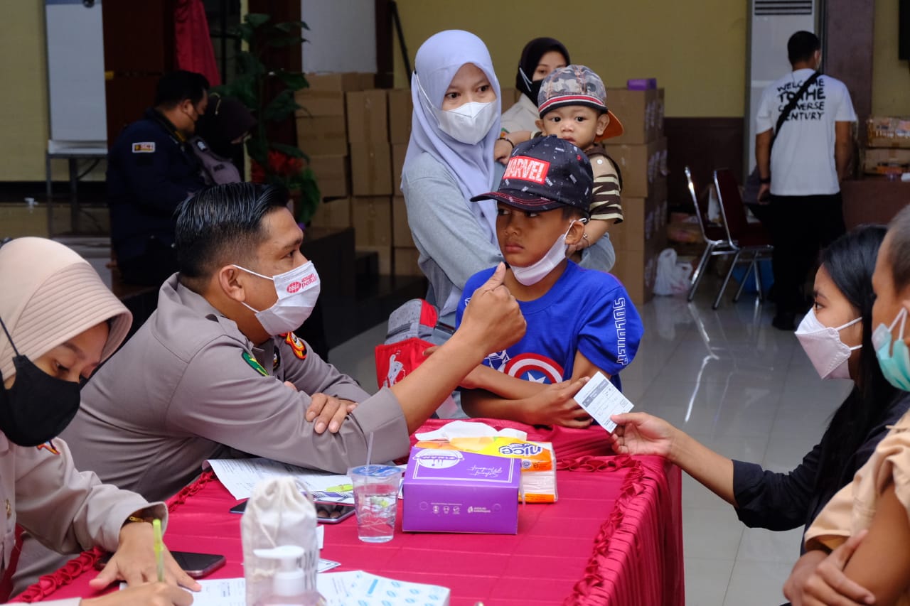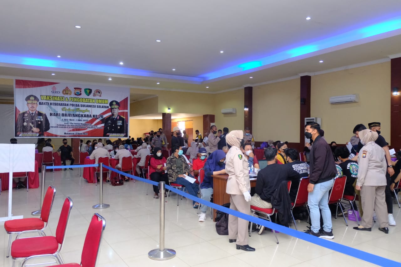 Dalam rangka Hari Bhayangkara Ke-76 Personil Polda Sulsel Menggelar Kegiatan Vaksinasi dan Pengobatan Gratis yang disambut antusias oleh masyarakat umum dan sekitarnya yang datang untuk melakukan pemeriksaan.