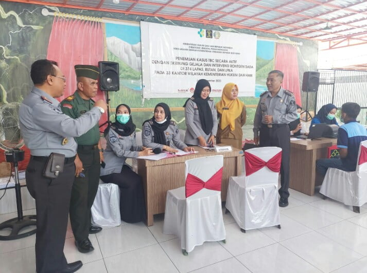 Adapun dasar pelaksanaan kegiatan ini adalah menindaklanjuti Surat Direktur Perawatan Kesehatan Dan Rehabilitasi pada Direktorat Jenderal Pemasyarakatan Nomor : PAS.06-PK.06.07-710 tentang Skrining TBC dengan Intervensi Rontgen Dada. Tujuan kegiatan ini adalah untuk mengoptimalkan angka penemuan kasus TBC secara aktif dan masif pada kelompok komunal yg berisiko tinggi / rentan terhadap penularan / penyebaran di dalam komunitas khususnya Lapas / Rutan. Dan teknis pelaksanaan kegiatan pemeriksaan dimulai dengan pendaftaran pendataan dan pengisian formulir selanjutnya dengan bantuan petugas, satu per satu Warga Binaan masuk ke dalam unit kendaraan bus yang dilengkapi dengan teknologi sinar X-Ray.