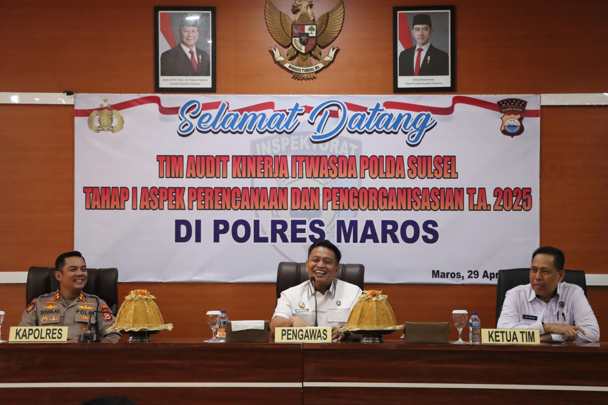 Transnusi.com Maros Sulawesi Selatan — Inspektorat Pengawasan Daerah (Itwasda) Polda Sulsel melaksanakan Audit Kinerja Tahap I Tahun Anggaran 2025 di Markas Polres Maros yang digelar di Aula Promoter Polres Maros, Selasa (29/4/2025).