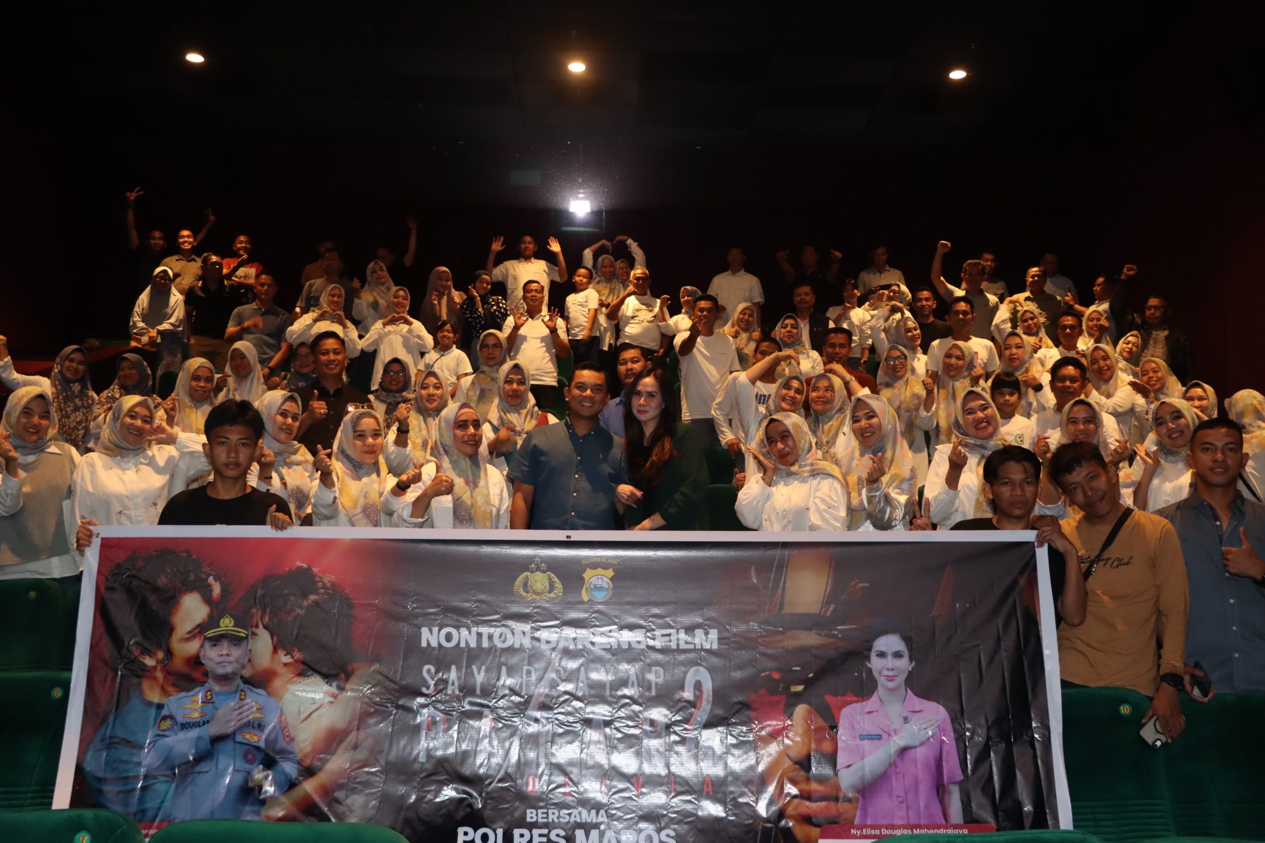 Maros. Sulawesi Selatan — Kapolres Maros AKBP Douglas Mahendrajaya, melaksanakan nonton bareng (nobar) film ‘Sayap Sayap Patah 2’ di XXI Trans Studio Mall (TSM) Makassar.