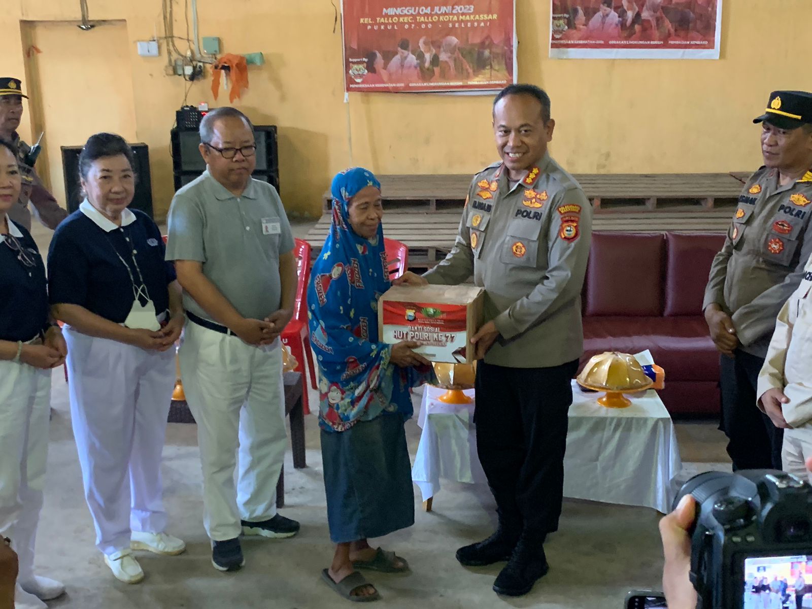 Seusai Kemakam Raja-Raja Tallo, Kapolrestabes makassar bersama rombongan melanjutkan ke Gudang Kecap Jl. Sultan Abdullah raya untuk acara pembukaan Gotong Royong dan pembagian sembako kepada Warga.
