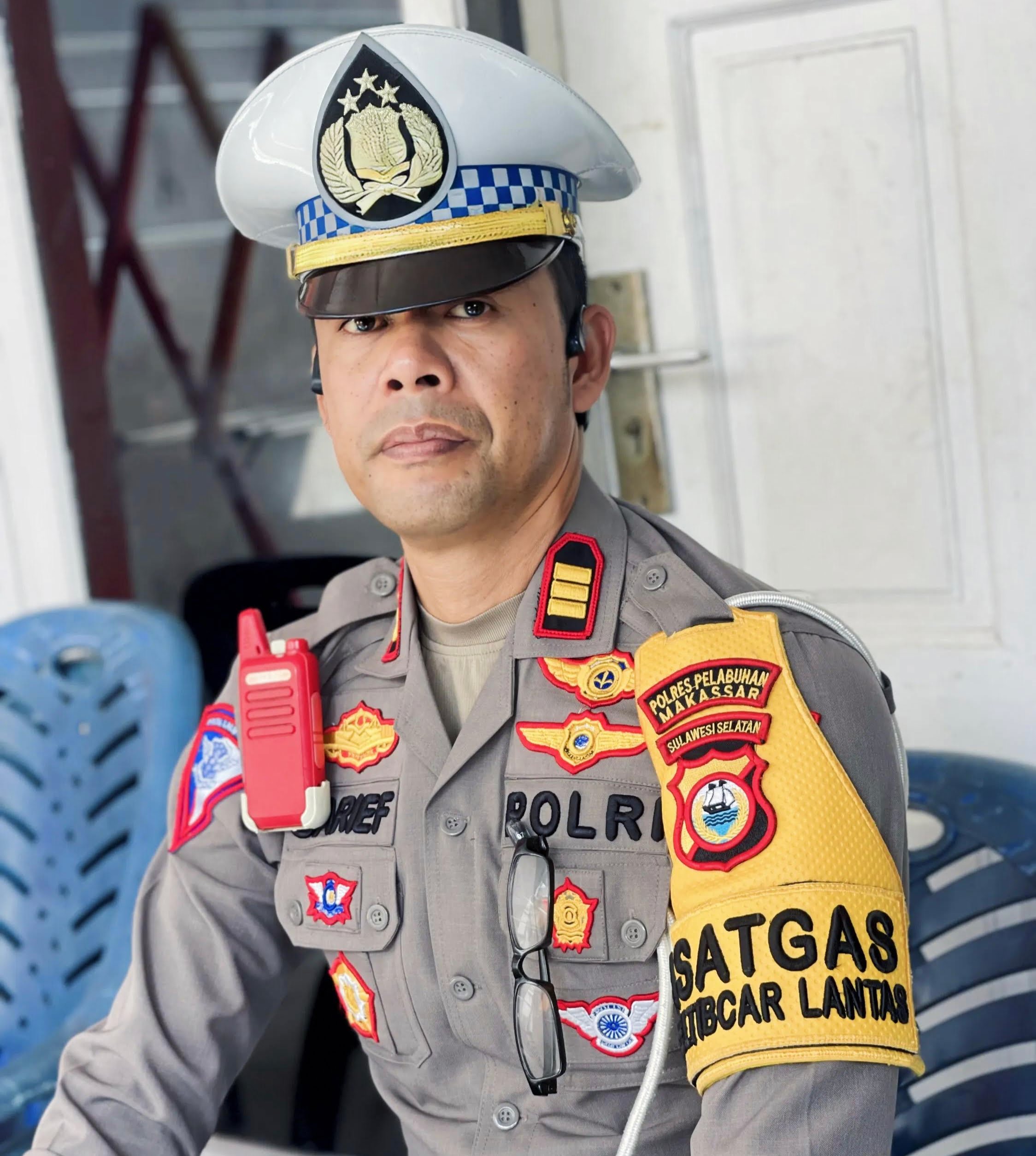 Kasat Lantas Polres Pelabuhan Makassar Bersama Personel, Patut Di Acungi Jempol Atas Kinerjanya“Jadi, Saat ini para sopir yang sering memarkirkan kendaraan nya di bahu jalan Nusantara, kami melalui pendekatan. Mobil truk ,mobil container masuk di area parkiran pelabuhan.” Kata AKP Sariep.