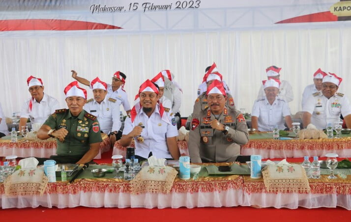 Acara tersebut dihadiri oleh Wakapolda Sulsel PJU Polda Sulsel, Walikota Makassar, Ketua KPU Sulsel, Ketua Bawaslu Sulsel, Kapolres Jajaran, Dandim, Pejabat Pemkot dan Pemkab se Sulawesi Selatan , Bhabinkamtibmas, Babinsa. Kegiatan berlangsung di Lapangan Karebosi Jl Ahmad Yani Makassar, Rabu (15/02/2023).