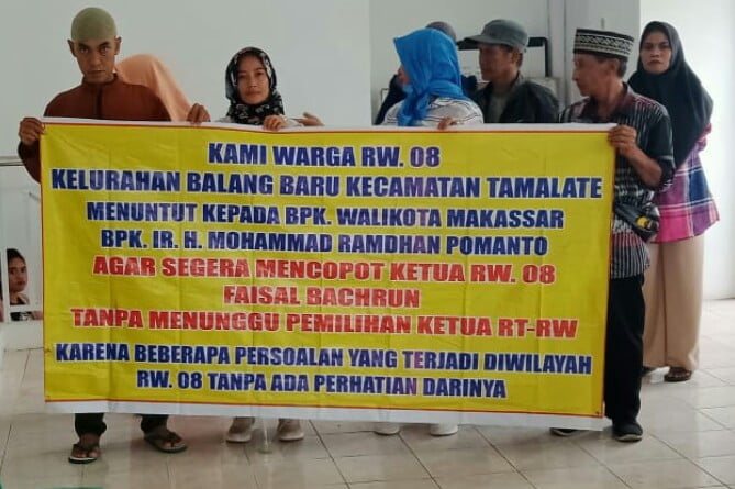Transnusi.com Makassar — Belasan Warga mendatangi kantor Kelurahan Balang baru Kecamatan Tamalate meminta Ketua RW 8 untuk di copot.