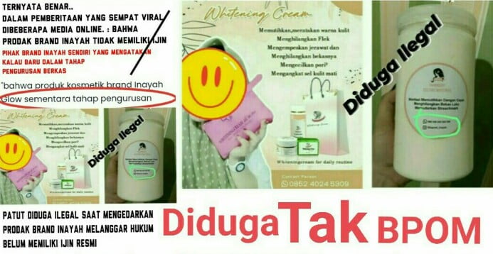 Olehnya itu, “kami meminta kepada Badan pengawas obat dan makanan (BPOM) segera turun melakukan pemerinksaat terhadap semua legalitas dari pemilik Brand Inayah Kosmetik.