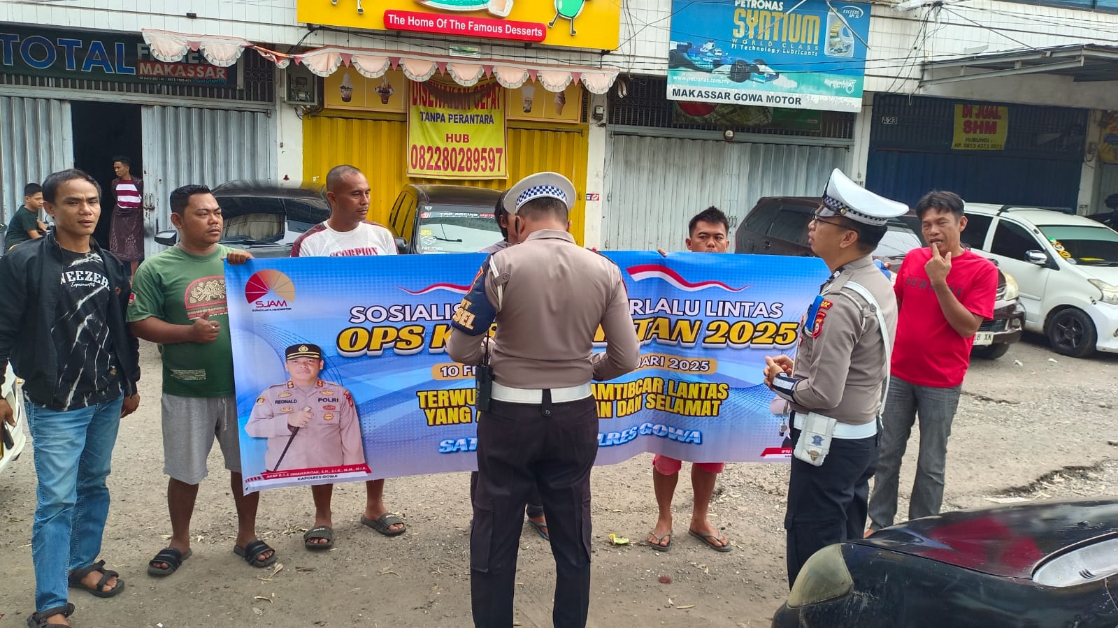 Kegiatan yeng dilaksanakan di jalan Poros Sultan Hasanuddin tepatnya di depan ruko graha satelit tersebut menyasar sopir angkutan umum gelap yang mangkal menunggu penumpang.