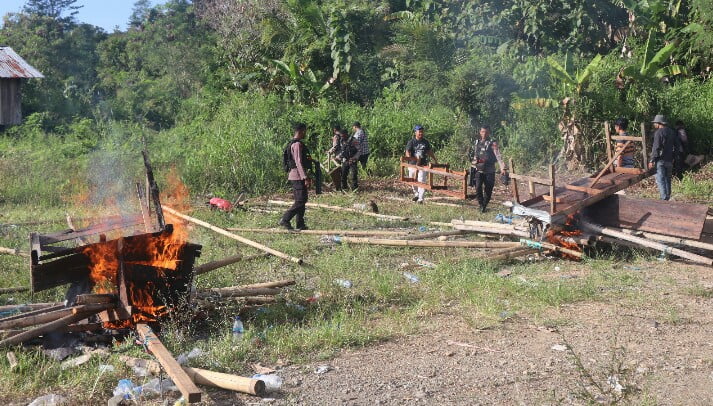 Polisi Lakukan Pembongkaran Arena Sabung Ayam di Nabire