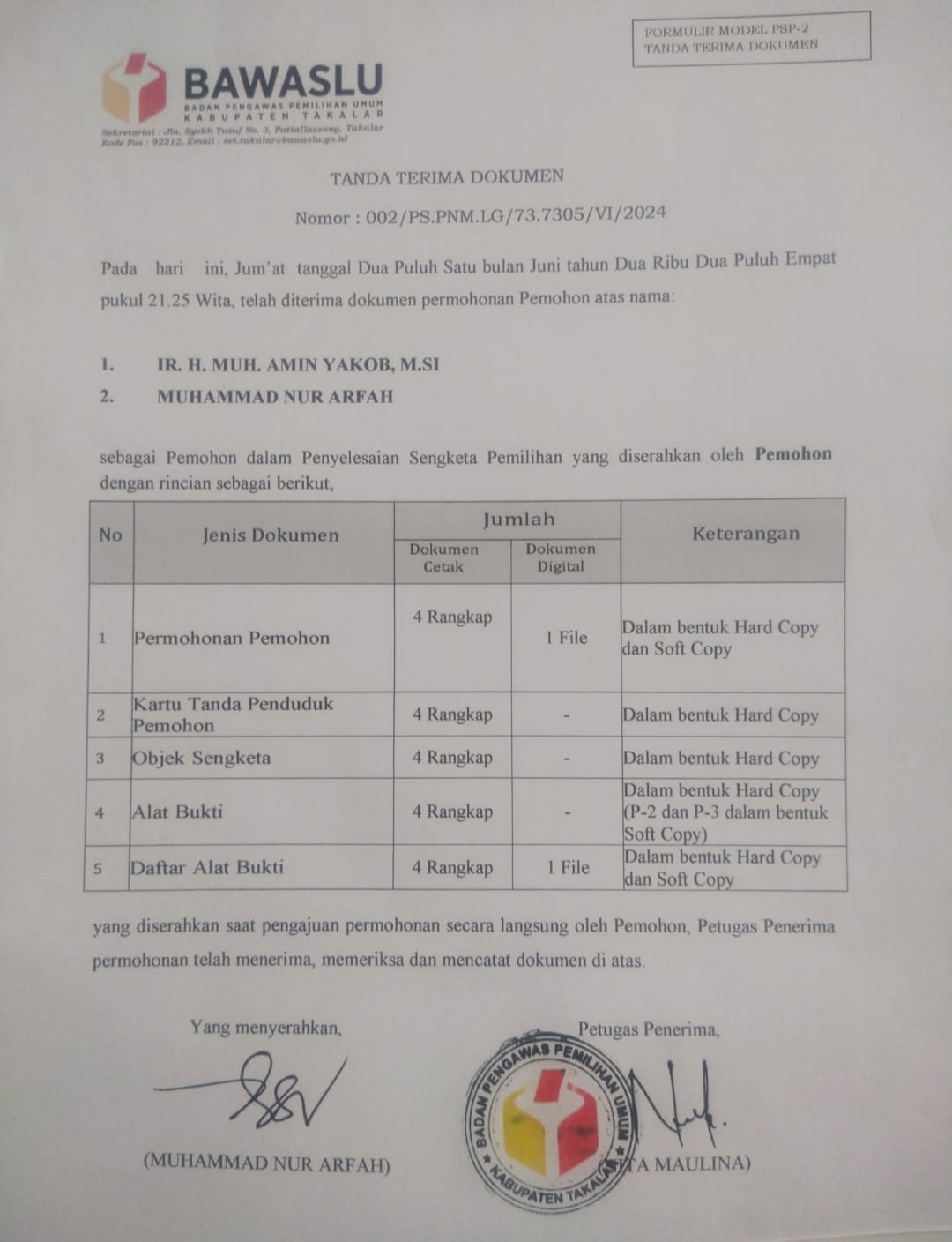 Dilain pihak ketua Bawaslu Takalar Nellyati yang dikonfirmasi terkait surat permohonan gugatan pihak calon Pasangan Perseorangan Amin Yaqob – Nur Arfah, membenarkan jika pihaknya sudah menerima surat permohonan tersebut.