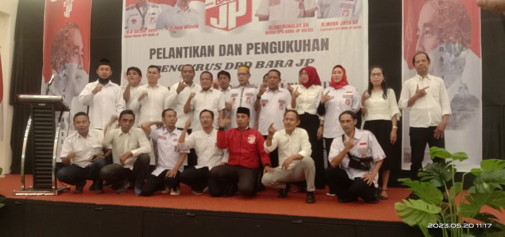 Transnusi.com Makassar Pengurus Dewan Pimpinan Daerah (DPD) Barisan Relawan Jalan Perubahan (Bara JP) Sulawesi Selatan periode 2021-2026, resmi dilantik oleh Ketua Umum Utje Gustaaf Patty, di Hotel Grand Makassar, Jalan Monumen Emmy Saelan No. 10 Kota Makassar, Sabtu (20/05/2023).