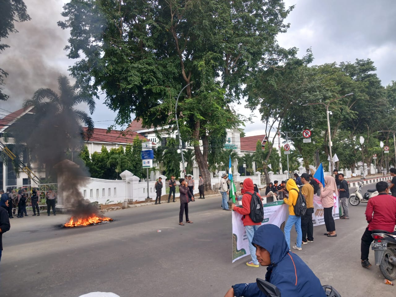 Transnusi.com Takalar Sejumlah mahasiswa yang menggelar aksi unjuk rasa saat pembukaan MTQ ke 33 tingkat Provinsi Sulawesi selatan kabupaten takalar, kamis (2/5/24)