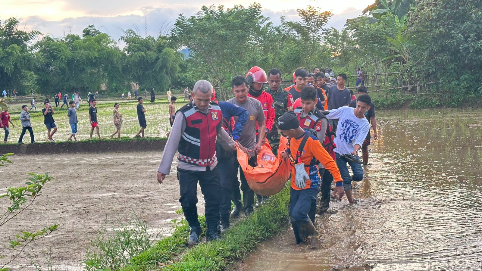 Setelah melalui proses pencarian yang melibatkan penyisiran area sungai, korban akhirnya berhasil ditemukan dalam kondisi meninggal dunia pada Selasa sore.