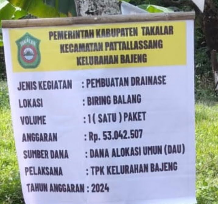 “Pasalnya masih saja ada pelaksana yang disinyalir melaksanakan pekerjaan yang terkesan asal-asalan dan tidak sesuai spesifikasi tanpa memikirkan kualitas pekerjaannya sehingga terkesan tidak Profesional, hal tersebut dapat kita saksikan pada pekerjaan Drainase di kelurahan bajeng, yang menurut papan informasi pekerjaan dilapangan pekerjaan tersebut menelan anggaran sebesar Rp.52.042.507,- yang bersumber dari Dana alokasi umum DAU Tahun 2024
