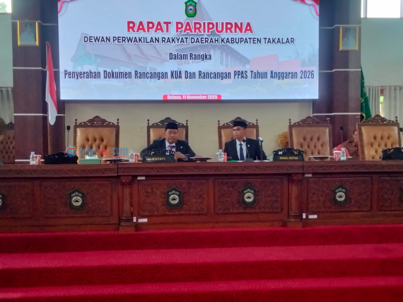 Takalar, SulSel Rapat Paripurna Dewan Perwakilan Rakyat Daerah (DPRD) Kabupaten Takalar, dalam rangka penyerahan KUA dan rancangan PPAS tahun anggaran 2026, yang pimpin oleh Wakil Ketua DPRD H.Fadel Achmad Daeng Rewa dari Partai Nasdem Takalar, Selasa 11/11