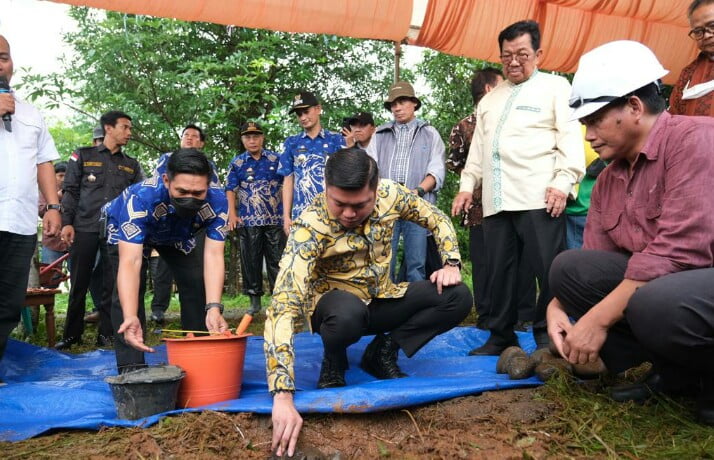 Transnusi.com Gowa Bupati Gowa, Adnan Purichta Ichsan ikut melakukan peletakan batu pertama pembangunan Gedung Fakultas Pertanian Universitas Bosowa (Unibos) di Desa Bontoramba Kecamatan Pallangga, Jum’at (30/12).
